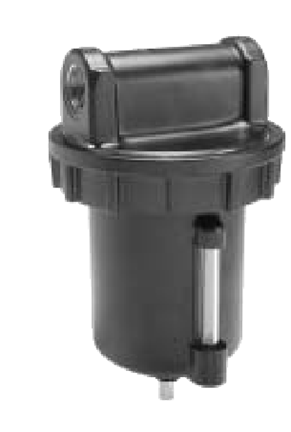 Filtros para línea principal Serie F602, Puertos ¾ 2 ½, Flujo: 270 - 1200 SCFM*, Presión máx.: 300 PSIG, Cap. Vaso: 0.47 & 0.95 lts, Metálico c/s Mirilla, Micrón: 40 std & 5 opcional, Purga Automática.